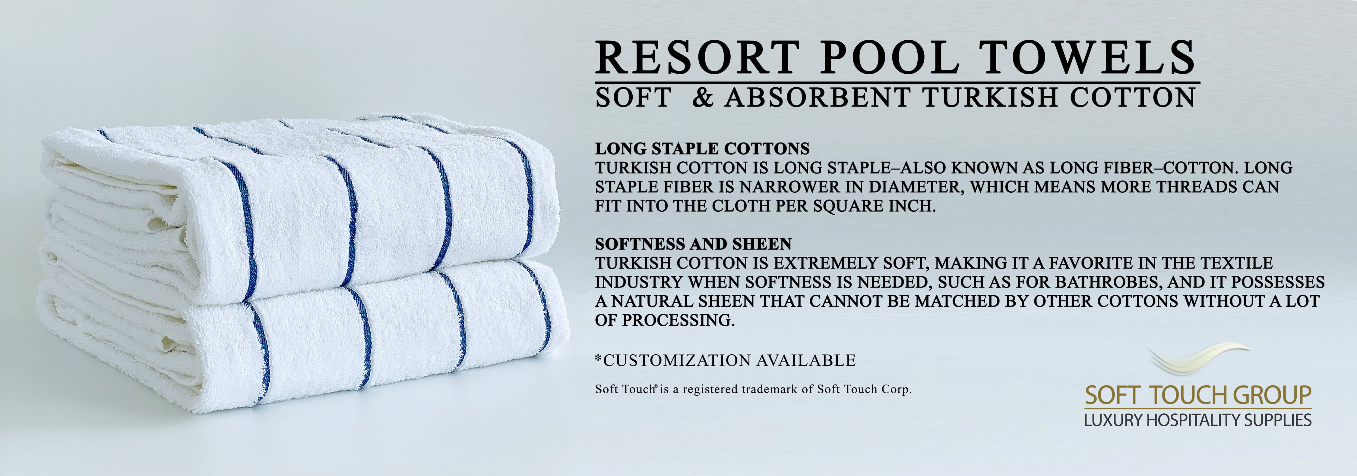 Turkish cotton is long staple–also known as long fiber–cotton. Long staple fiber is narrower in diameter, which means more threads can fit into the cloth per square inch.
